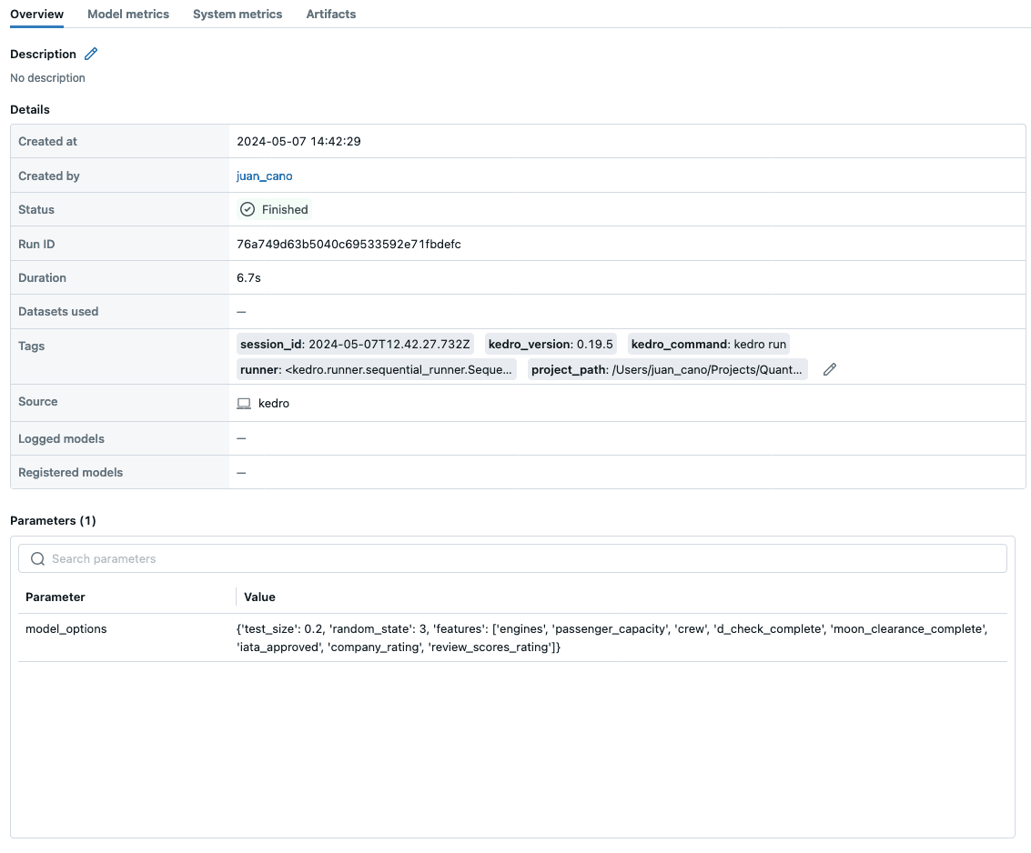 Fortunately, some very well established alternatives already exist. Many of our users have already discovered the synergy between Kedro and MLflow, often citing them as the perfect companions for managing and tracking experiments.